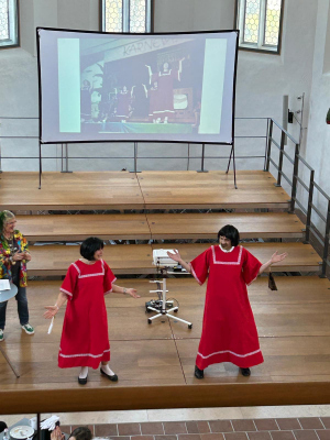 🎬✨ Ein weiteres Highlight war die Sketcheinlage „Das Gewitter“. Hier wurde nicht nur das Wetter, sondern auch die Stimmung zum Kochen gebracht! Die Lacher hallten durch die Kirche, und wir fragten uns, ob wir uns besser einen Regenschirm schnappen sollten – oder einfach mitlachen! ☔😂