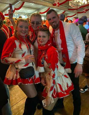 Nach dem Umzug ging es ab ins Zelt zur Aftershowparty! Dort wurde mit Tanz und Gesang bis in die frĂŒhen Morgenstunden gefeiert. Wer hĂ€tte gedacht, dass wir so viele Talente im Singen und Tanzen haben? 😂