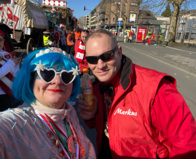 Am Rosenmontag ging es dann frĂŒh los! Der Wegruf und der Marsch der Roten Funken durch die Stadt Eschweiler waren ein Spektakel fĂŒr sich. Blasmusik, Konfetti und jede Menge gute Laune – was will man mehr? Nach einem herzhaften Erbsensuppenessen im Festzelt waren wir bestens gestĂ€rkt fĂŒr das, was kommen sollte.