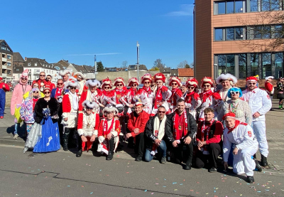 Am Rosenmontag ging es dann frĂŒh los! Der Wegruf und der Marsch der Roten Funken durch die Stadt Eschweiler waren ein Spektakel fĂŒr sich. Blasmusik, Konfetti und jede Menge gute Laune – was will man mehr? Nach einem herzhaften Erbsensuppenessen im Festzelt waren wir bestens gestĂ€rkt fĂŒr das, was kommen sollte.