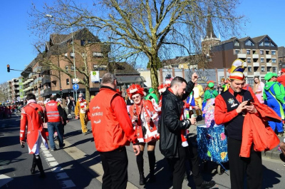 Am Rosenmontag ging es dann frĂŒh los! Der Wegruf und der Marsch der Roten Funken durch die Stadt Eschweiler waren ein Spektakel fĂŒr sich. Blasmusik, Konfetti und jede Menge gute Laune – was will man mehr? Nach einem herzhaften Erbsensuppenessen im Festzelt waren wir bestens gestĂ€rkt fĂŒr das, was kommen sollte.