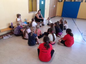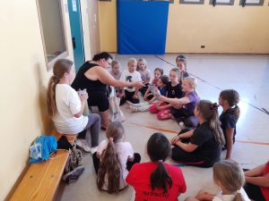 Kindergarde: „Erst trinken, dann ratschen, dann Frisur richten, dann nochmal trinken. Und wenn die Trainerin ‚weiter geht’s‘ ruft, dann sagen wir: ‚Warte, nur noch schnell einen Schluck!‘“