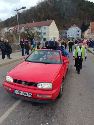 • Die FG-Nabburg ließ sich nicht lumpen und startete gleich mit zwei Begleitfahrzeugen. Man könnte meinen, sie hätten ein ganzes Karnevalsteam im Schlepptau! Die Fahrzeuge waren so bunt geschmückt, dass man fast eine Sonnenbrille hätte tragen müssen, um nicht geblendet zu werden. Und wer hätte gedacht, dass die Prinzen und das Kinderprinzenpaar so viele Glitzersteine in ihren Kostümen verstecken können? Ein echter Hingucker!Die Prinzen- und Jugendgarde war ebenfalls mit von der Partie und sorgte für ordentlich Stimmung. Mit ihren Tänzen und fröhlichen Gesichtern brachten sie die Zuschauer zum Lachen und Mitfeiern. Und dann war da noch die offizielle Abordnung der Kindergarde, die in ihren eigenen Faschingskostümen auftrumpfte. Man konnte kaum glauben, dass diese kleinen Narren so viel Kreativität und Spaß in ihren Kostümen vereinen konnten – von glitzernden Einhörnern bis hin zu mutigen Superhelden war alles vertreten!Die Strecke war gespickt mit Highlights, die das Publikum zum Staunen und Lachen brachten. Ein besonders lustiger Moment war, als ein Clown versuchte, mit einem riesigen Luftballon zu jonglieren – und dabei mehr Luftballons in die Menge warf, als er fangen konnte! Die Kinder waren begeistert und jagten den bunten Ballons hinterher, während die Erwachsenen sich vor Lachen kaum halten konnten.